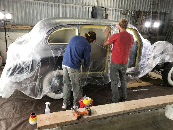 Carefully Masking The 1938 Buick Limousine For Phosphate Etch Primer Over Bare Metal