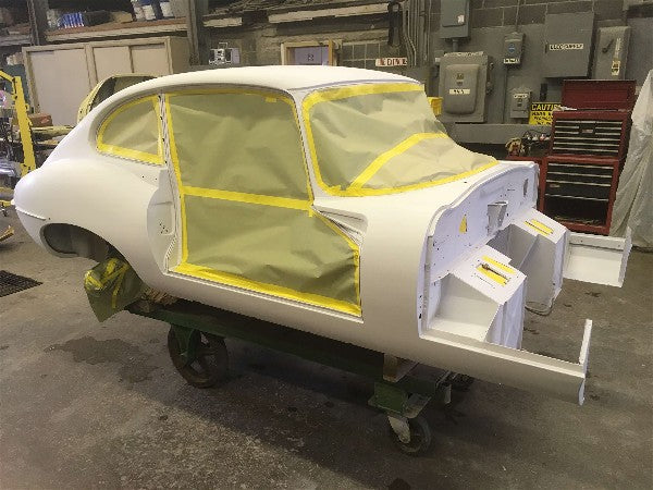 Freshly Masked And Prepped Jaguar Body Ready For The Paint Booth